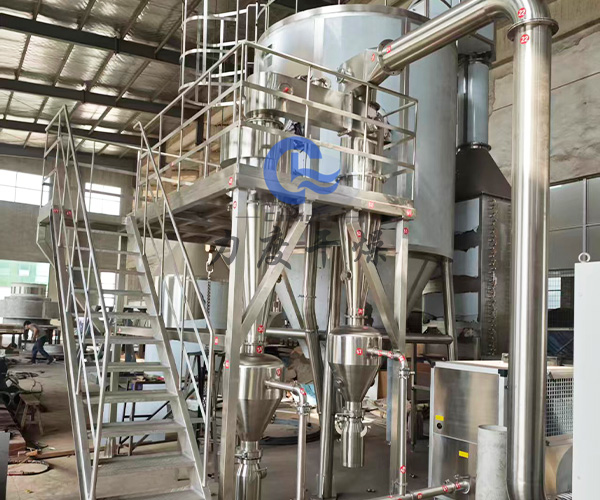 1. 干燥塔:材质304/316L不锈钢(食品/制药级),塔径1.2~6m(按处理量匹配,增大塔径减少粘壁),锥角60°~90°(配空气扫壁装置,解决山药/浸膏粘壁问题)