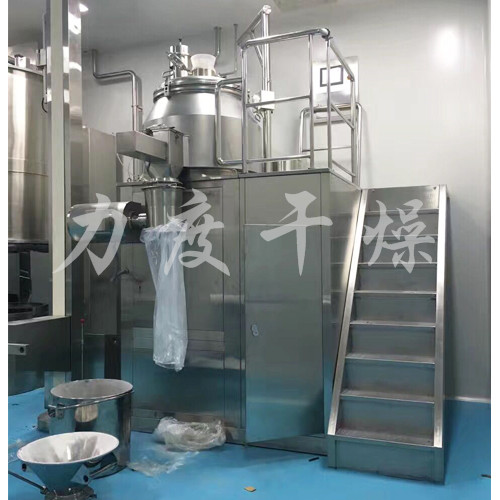 粉体物料与粘合剂在圆筒形容器中由底部混合浆充分混合成湿润软材,然后由侧置的高速粉碎桨切割成均匀的湿颗粒。